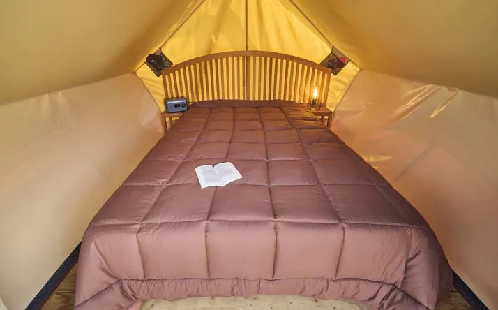 Dans la tente : 1 Matelas 140x190 cm, 1 lampe de chevet