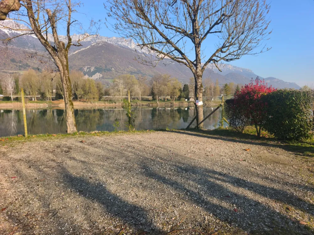Emplacement pêcheur n°5 situé à proximité du sanitaire n°1 avec accès au bord du lac par escalier pour la pêche. Cet emplacement est prioritairement dédié aux pêcheurs venant pratiquer sur le lac et doit être occupé pendant la durée du séjour (pas de réservation nue sans occupant !)